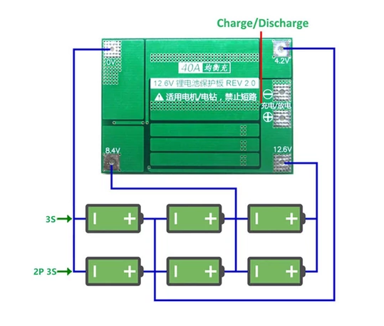 3S 40A 18650 Akku Felügyeleti rendszer, BMS Balansz 6-2-1