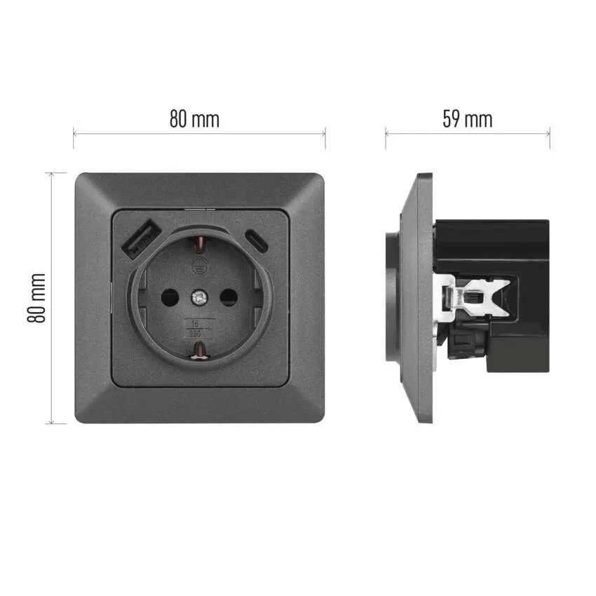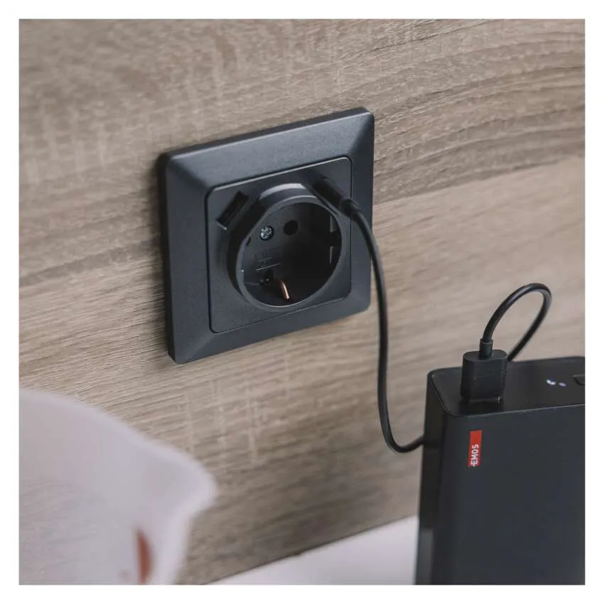 A6000.7 EMOS 2P+F Aljzat +USB A+ USB C, antracit