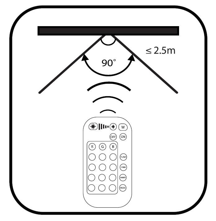 A távirányító segítségével a termék be és kikapcsolható, szabályozhatja fényerejét illetve a távirányító, alsó 6 módváltó gombaival további, különböző világítási effektet érhet el. A távirányító 1 darab CR2025-ös gombelemmel működik, mely tartozéka a csomagnak. Fontos, hogy használat előtt el kell távolítani a plasztik elemvédő fóliát.