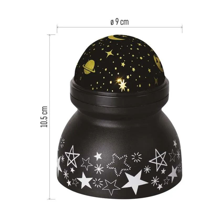 Létezik olyan dekoráció, amit a gyerekek szó szerint imádni fognak? Biztos, hogy ez a beltéri használatra tervezett játékos projektor, amely csillagok és bolygók mozgó motívumait vetíti a falra, a mennyezetre vagy a bútorokra. A projektor AAA akkumulátorral vagy USB-adapterrel működik, így teljesen biztonságos a használata nemcsak a gyerekszobában. Szerezzen gyermekeinek gondtalan éjszakai alvást a megnyugtató csillagos égbolt nézegetésével.