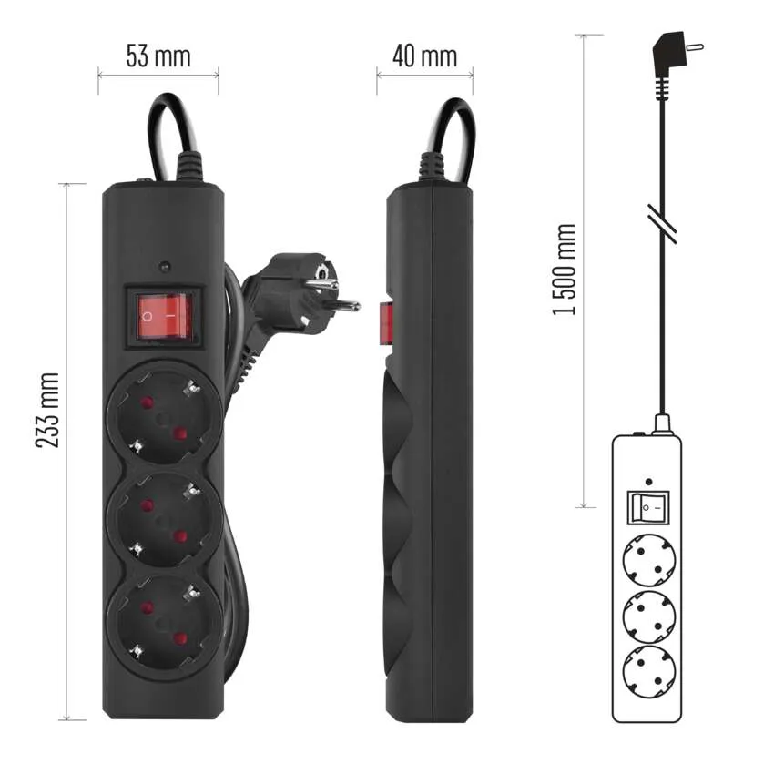 EMOS Túlfeszültségvédő 3 aljzat, 1,5 m, fekete P54214