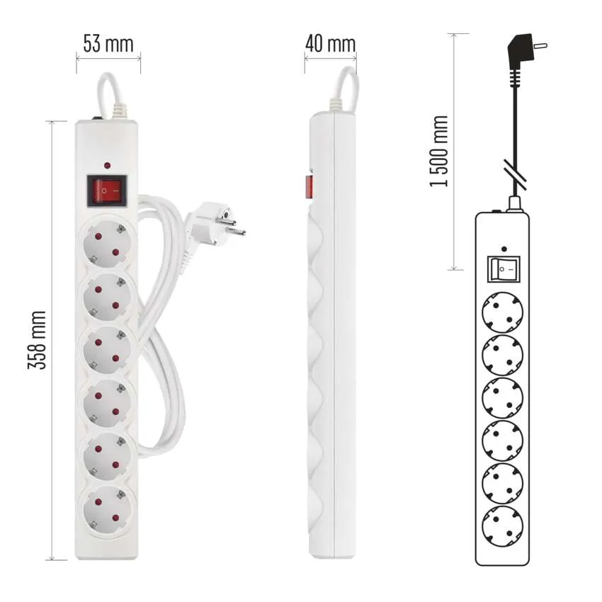EMOS Túlfeszültségvédő 6 aljzat, 1,5 m, fehér P54215