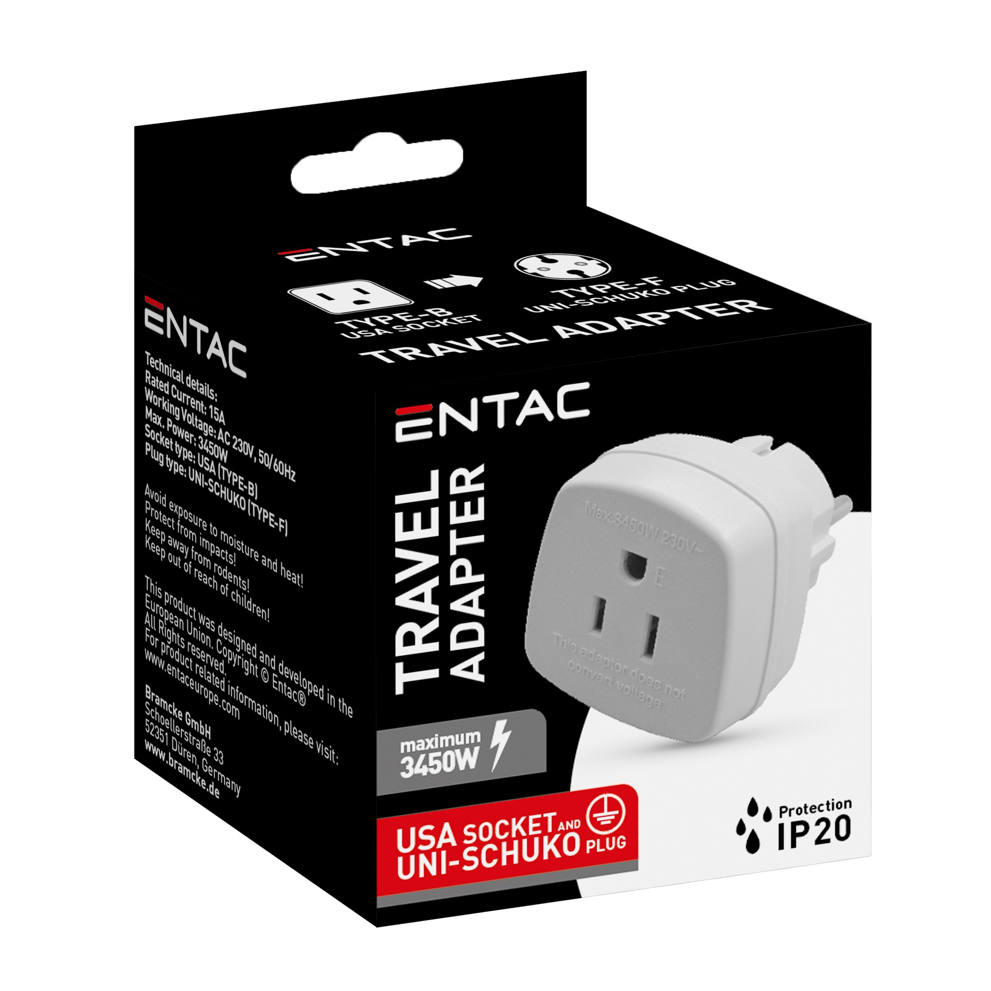 Entac Hálózati Utazó Adapter USA Aljzat & Schuko Dugvillával