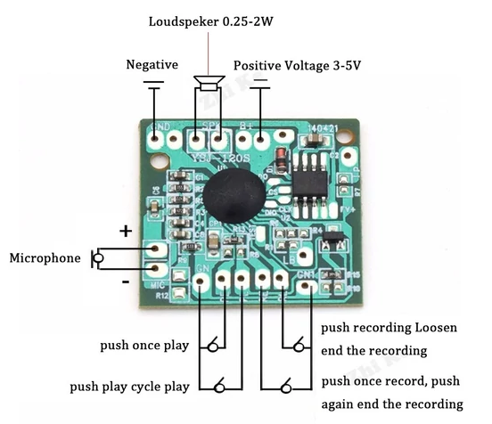 Ezzel a modullal kiváló minőségben, maximálisan 2 perc hangot lehet rögzíteni. Lehet az zene, emberi hang, vagy bármely más hang.