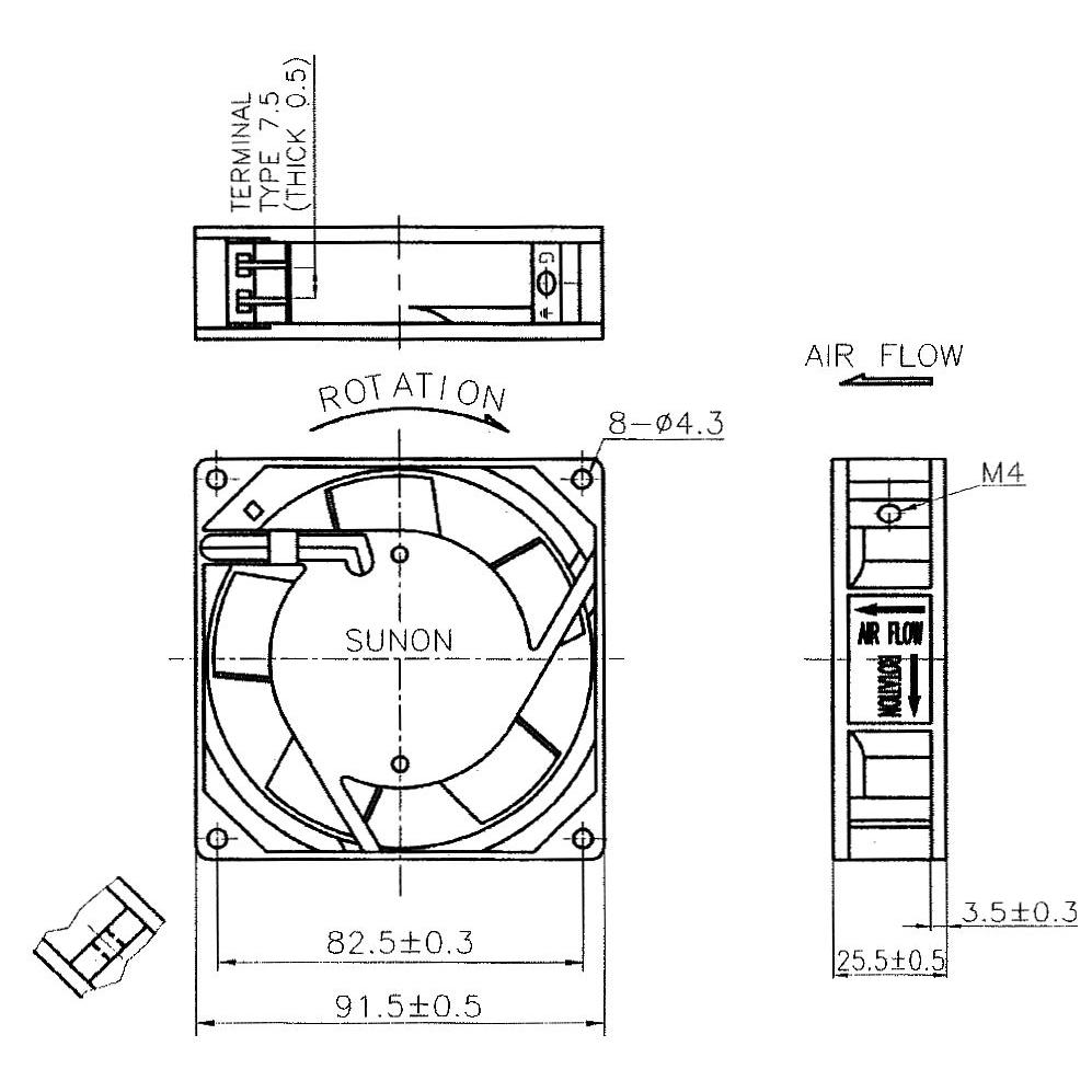92x25 230VAC 14,5W 49,27m3/h csúszó csap. Faston