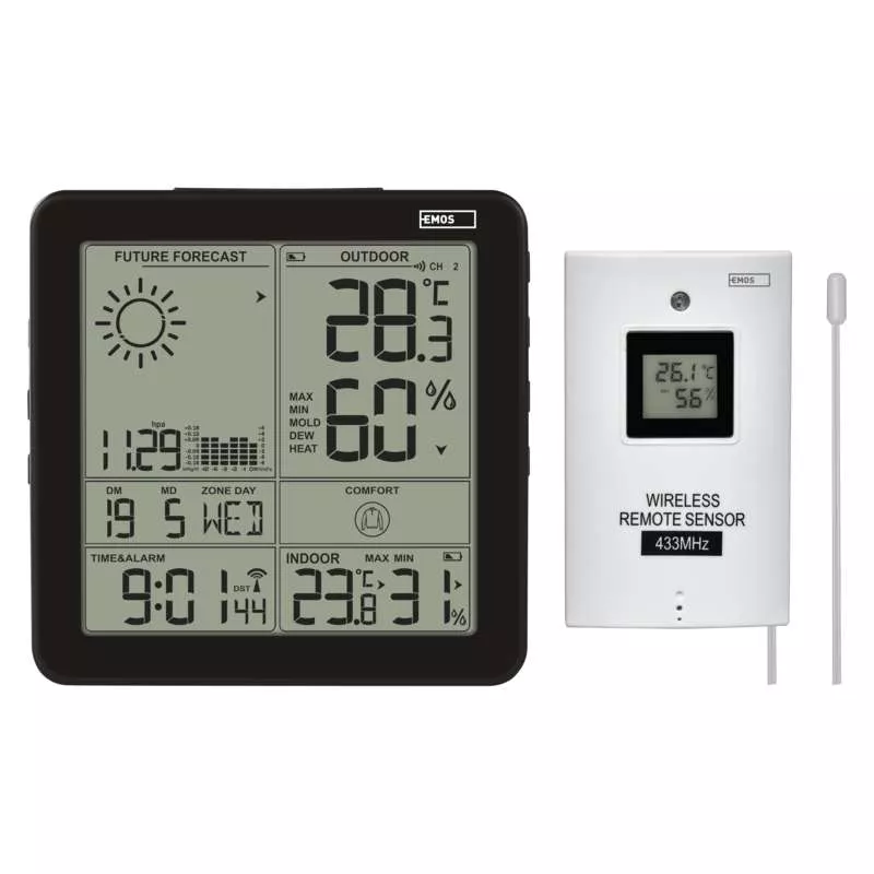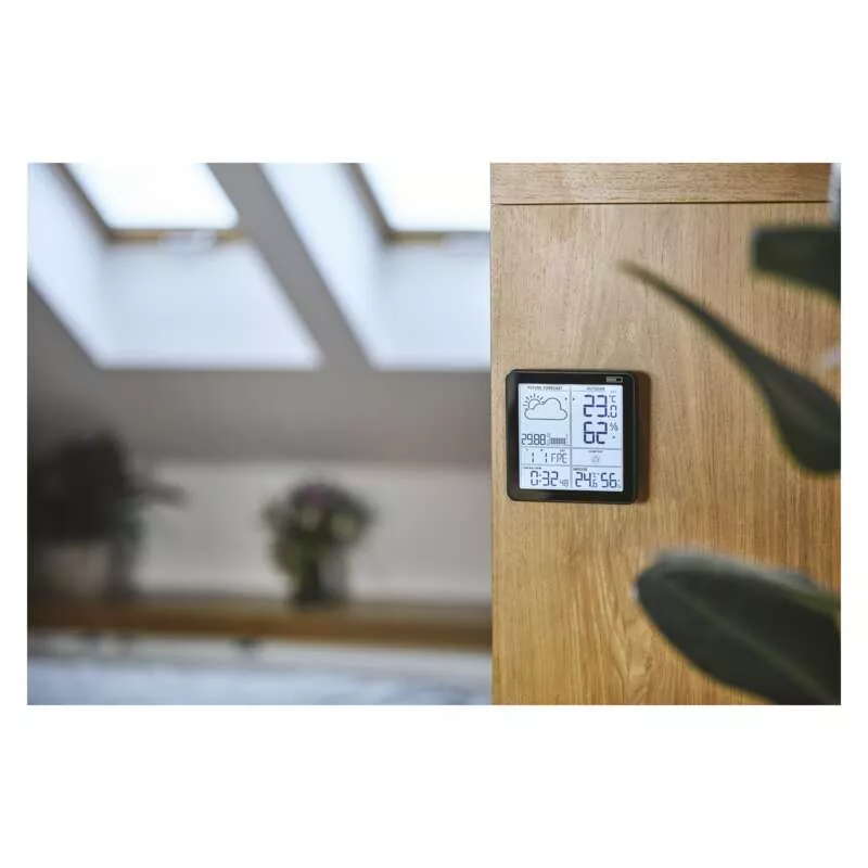 Az időjárás-állomás kültéri érzékelőt is tartalmaz, amely akár 50 méteres távolságban is elhelyezhető. És ez még nem minden! Igény esetén lehetőségünk van 3 érzékelőt is csatlakoztatni az időjárás-állomáshoz, ami ezáltal tájékoztatni fog a hőmérsékletről az egész telken, vagy például a pincében és a garázsban stb. Vitathatatlanul hasznos adat az 1%-os pontossággal kijelzett relatív páratartalom, amelyet kültéren 20% és 95% között, beltéren pedig 1% és 99% között érzékel. A barométer pedig a légnyomásról ad tájékoztatást.