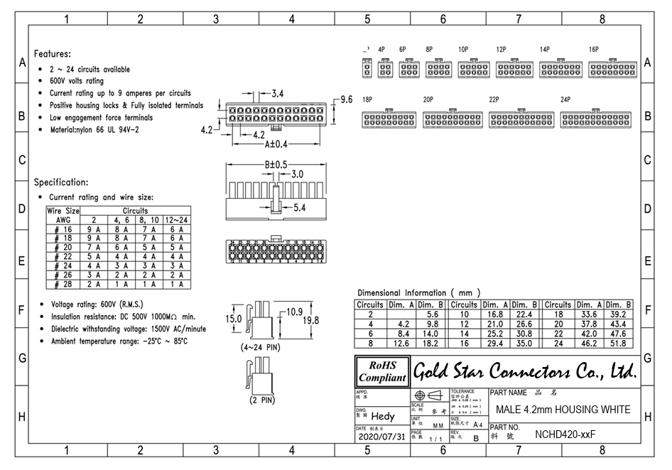 Mini fit 4,2mm tápcsatlakozó pár szet 12tűs NCHD420-12F-12M