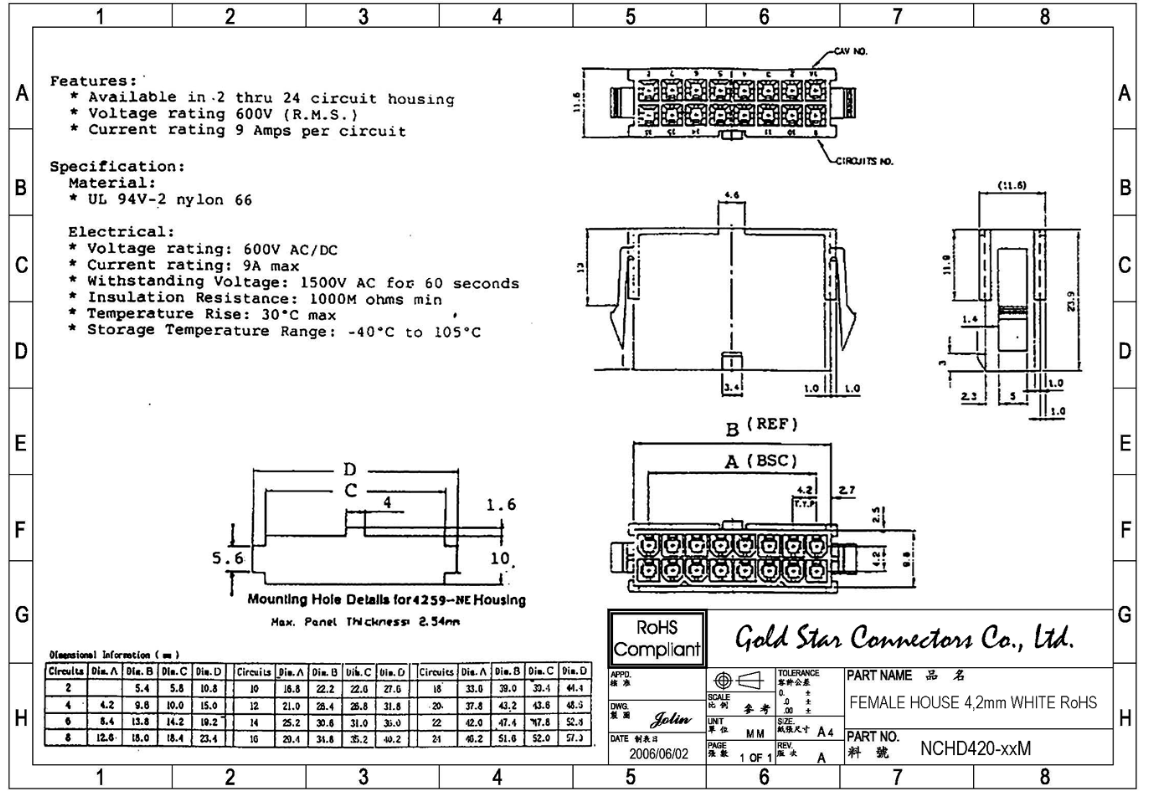 Mini fit 4,2mm tápcsatlakozó pár szet 4 tűs NCHS420-04F-04M