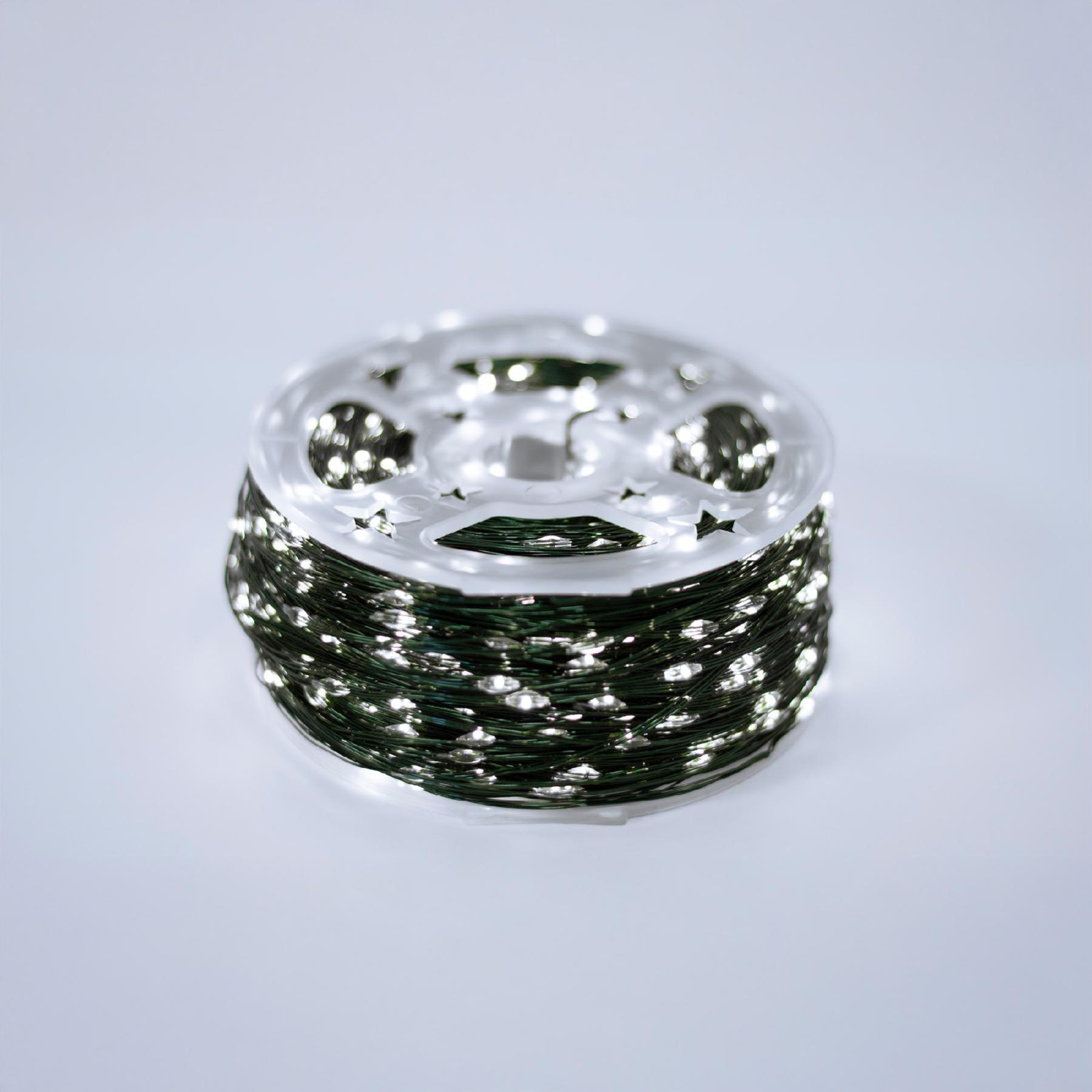 A fényfüzér tekintélyes 150 méteres hosszával kiterjedt felületek díszítésére is alkalmas, így akár egy egész homlokzat, kert vagy nagyobb belső tér is ragyogásba borítható. A vékony, sötétzöld rézvezeték szinte észrevétlen marad, így a fényhatás még inkább érvényesül, és a figyelem kizárólag a ragyogó fényekre irányul.