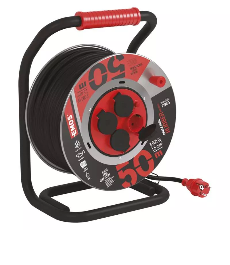 Hálózati csatlakozásra van szüksége nagy területen építőipari, mezőgazdasági vagy kertészeti tevékenységhez? Az 50 m hosszú vezetékkel tökéletes rugalmasságot élvezhet és bármikor korlátozás nélkül csatlakoztathatja villamos berendezéseit, amikor csak szükséges.