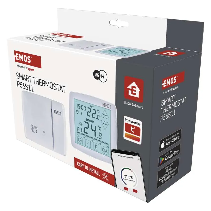 A P56S11 termosztát egyesíti a praktikus funkcionalitást a modern, időtlen dizájnnal, amely bármilyen belső térbe illik. A háttérvilágítással ellátott érintőképernyő világos és intuitív - a nagy számjegyek segítségével könnyen látható az aktuális és a beállított hőmérséklet, a háttérvilágításnak köszönhetően pedig éjszaka is kényelmesen kezelhető, anélkül, hogy fel kellene kapcsolni a villanyt. Ráadásul a termosztát támogatja az Amazon Alexa és a Google Assistant hangalapú asszisztenseket, így hangutasításokkal is vezérelheti.