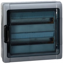 Legrand 601986 Plexo3 falon kívüli kiselosztó 2soros 2x18, 36 modulos IP65 Gyártó: Legrand IP Védettség: IP65 Modulok száma: 36 Sorok száma: 2 Szerelés: Falon kívüli