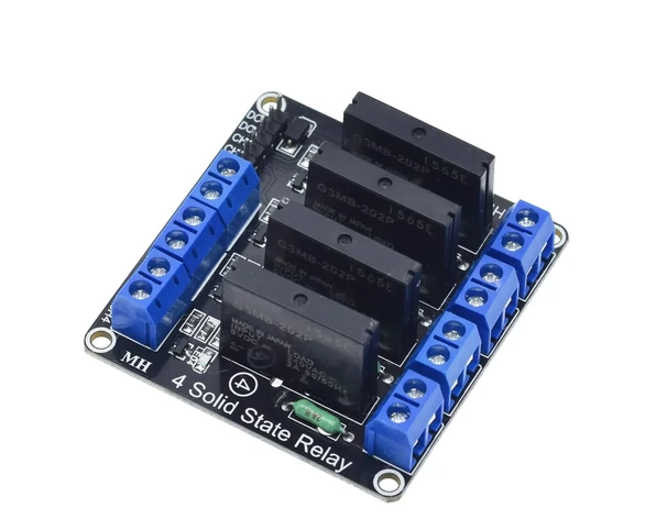 A 5V-os, 4-csatornás OMRON félvezető relé modul (SSR) a legmegbízhatóbb és legelegánsabb megoldás, ha több darab 230V AC terhelést szeretnél galvanikusan leválasztva, érintkezésmentesen, teljesen zajtalanul vezérelni mikrovezérlővel (Arduino, ESP32, STM32, Raspberry Pi stb.).