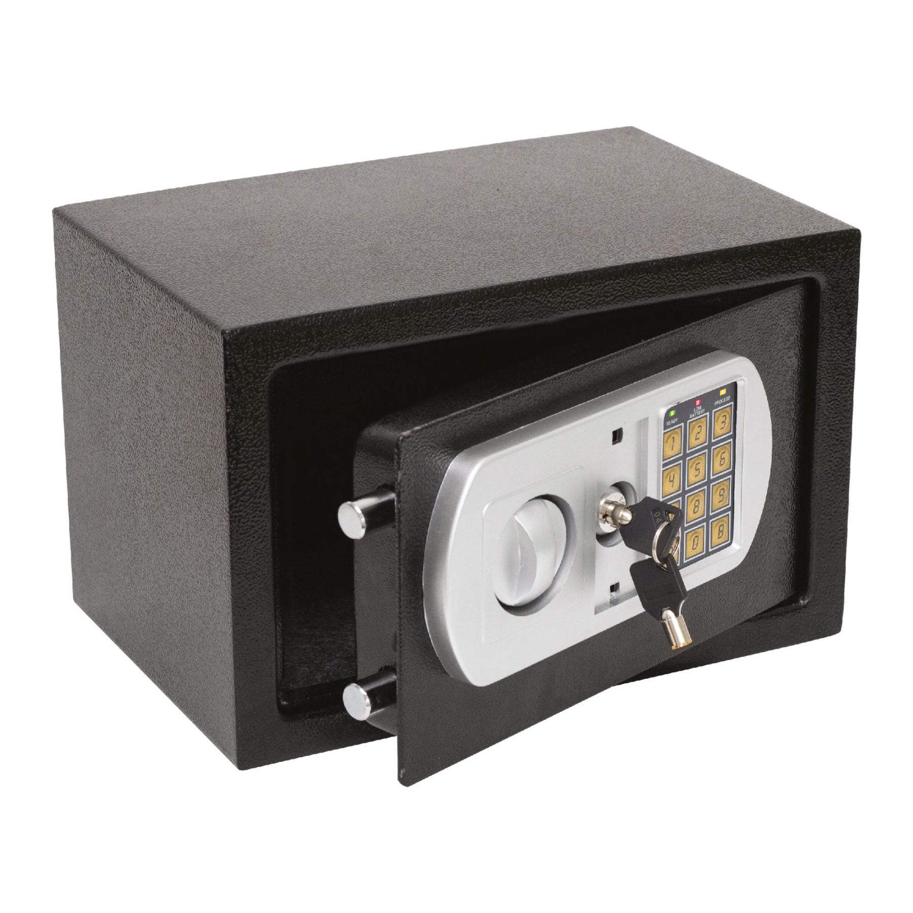 A széf erős acél konstrukcióval készült, amely megbízható védelmet nyújt a mechanikai behatásokkal szemben. A digitális, elektromos zárszerkezet lehetővé teszi, hogy 3–8 számjegyű tetszőleges kódot állítson be, melyet igény esetén gyorsan és egyszerűen megváltoztathat. A biztonság növelése érdekében illetéktelen nyitási próbálkozások után a készülék automatikus késleltetést aktivál, tovább fokozva az értékek védelmét.