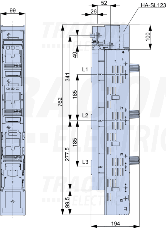 Az SL2-3X/3A típusú hárompólusú, pólusonként kapcsolható biztosító aljzatot 185 mm sínközéptávolságú gyűjtősínnel szerelt kapcsolószekrények készítéséhez ajánljuk. A készülék szélessége 99 mm. Az ónozott DELTA érintkezők biztosítják a biztosító aljzat hosszú élettartamát. A kapcsolható aljzat kialakítása megfelel a szakaszoló-kapcsolókra vonatkozó szabvány követelményeinek. Az aljzat kapcsaihoz alapesetben M12 csavarral rögzíthető kötőelemmel lehet a leágazó kábeleket csatlakoztatni, de opcióként más kábelbekötési lehetőség is választható. A készülék halogénmentes önkioltó zárt háza véletlenérintés ellen védett, a kapcsolófedélen mérőnyílás található az üzemi paraméterek ellenőrzéséhez. Az érintkezők mindkét oldala rugós elemmel erősített a megfelelő érintkezőerő fenntartása érdekében.Műszaki paraméterek