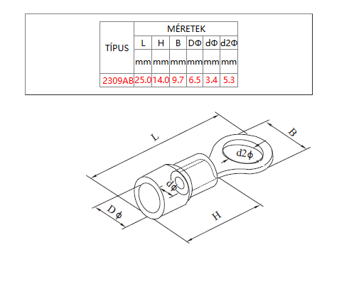 Szemes saru, szigetelt, 5,3mm sárga 2309AB