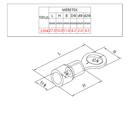 Szemes saru, szigetelt, 6,5mm piros 2304 / 5602 / PSZ6