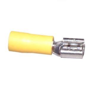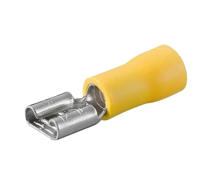 Szigetelés színe: sárga, anyaga: PVC cső. Elektromos teljesítmény: 600V 75°C. DIN 2,5-6,0mm2. AWG12-10 Hossza: 28,6mm. Rezgésmentes rézbetéttel.