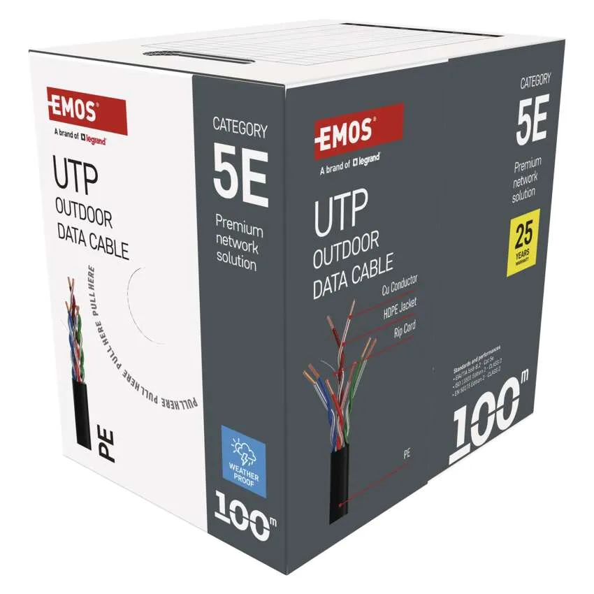 UTP CAT5E réz, kábel kültérre 4x2xAWG24/1 100m-es S9142