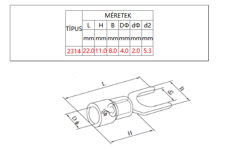 Villás szigetelt saru 5,3mm piros 2314