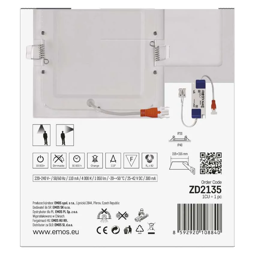 ZD2135 Beépíhető LED panel 12,5W NW zégyzet NEXXO