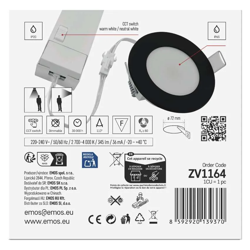 ZV1164 - LED SPOTLIGHT IP65 4,5W 345LM Fekete